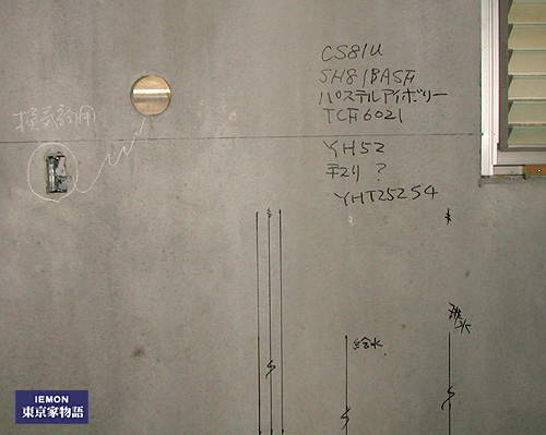 さて、現場監督S氏、営業O氏、インテリアコーディネータU女史、設計H氏、ガス業者、電気業者とオールキャストで臨みます。電気はとくに需要です。この日は電気工事会社の社員が来ていると思っていたら社長のK氏がじきじきに登場、現場を解説しながら案内しつつ変更の提案までしてくれます。御丁寧にゴクロウサンであります。