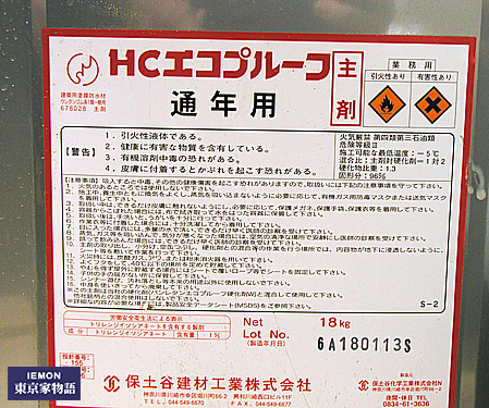 ・HCエコプルーフ:ウレタン塗膜防水材。主剤と硬化剤の2液混合で使用します。名前が示すとおり有害な物質を使わず環境にもやさしいとか。