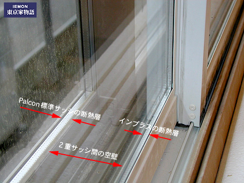 ・作業部屋に二重窓のインプラスがようやく追加されていました。やはり複層(ペア)ガラスで樹脂サッシ。内側の窓を開けると外窓を閉めていても熱気を感じます、ちゃんと断熱効果もあるんですね.....いいかも。遮音効果を上げるには壁の空気層を4cm以上確保したほうがいいらしいですが内外のサッシの空壁は約10cmです。しかしフカシ壁の空壁は約3cm。つまりこの部屋のエアコンダクトの穴から壁のつくりを見るとコンクリート壁+3cm発泡スチロール+石膏ボード1cm+空気層3cm+石膏ボード1cmになっています(前回の記事も参照あれ)。二重窓の追加だけでも遮音・断熱の効果はありますが石膏ボードと空気層は遮音効果が有り壁がちょっと凝っているわけです。