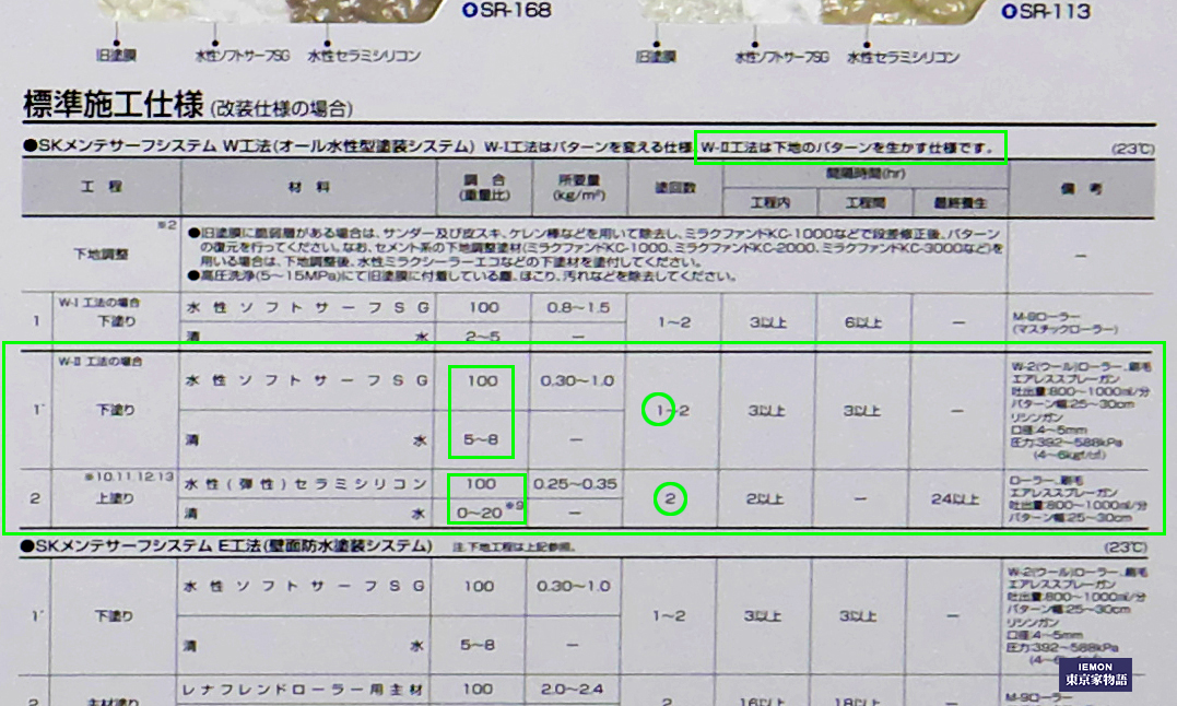 そっかぁ、さすが大成建設ハウジング。ちょっとグレードの高い塗料をサービスしてくれたのかぁ ... 私が指定した塗料よりも値段がちょっとだけ高くて耐用年数も1年か2年長いのです(耐用年数15年)。 まぁ、ほとんど同じといえば同じですけど。